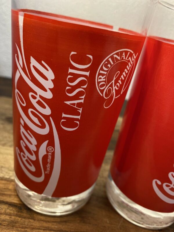 Vtg 1995 COCA COLA CLASSIC 2pc Indiana Glass Ribbon COCA COLA Drinking Glasses
