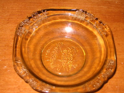 1930'S AMBER GLASS "PARROT" FRUIT BOWL - 5"
