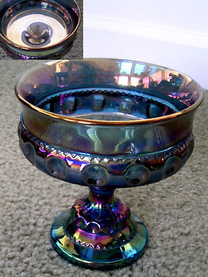 Title (ebay affiliate link): Vintage depression glass Cobalt Blue Iridescent Compote