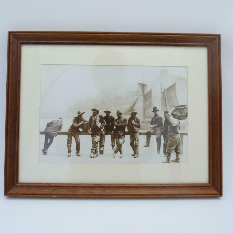 Title (ebay affiliate link): ANTIQUE BLACK AND WHITE PHOTOGRAPH OF A GROUP OF FISHERMEN WITH BOATS