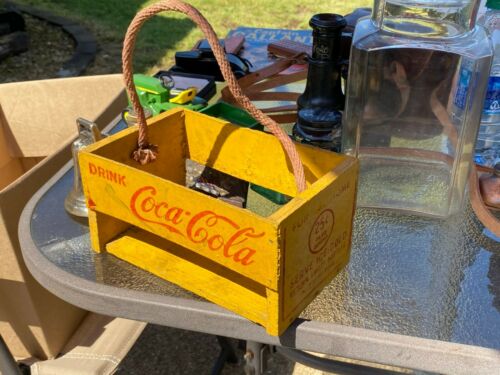 Title (ebay affiliate link): A7) Vintage Coca Cola Wooden Carrier 6 Pack Carton w Rope COKE! Rare Estate Find