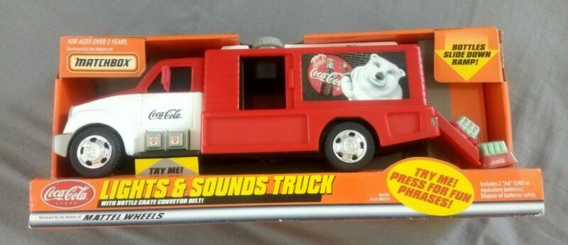 Title (ebay affiliate link): 2000 Coca Cola Matchbox Lights and Sounds Truck With Bottle Crate Conveyor Belt