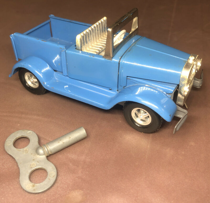 Title (ebay affiliate link): Wind-Up Metal Blue Car Truck Toy Roper W/ Key Japan Works Great Patent Pending