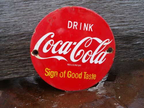 Title (ebay affiliate link): OLD USED DRINK COCA-COLA PORCELAIN DOOR ROUND SIGN "SIGN OF GOOD TASTE"