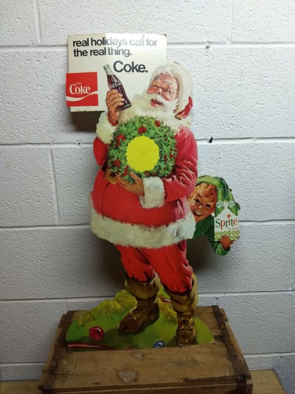 Title (ebay affiliate link): Vintage Coca Cola and Sprite Cardboard Christmas Stand Up Display Sign