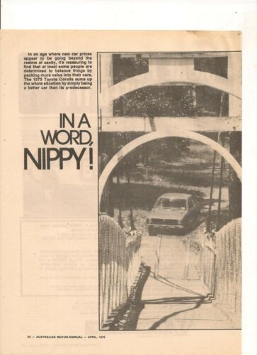 Title (ebay affiliate link): ORIGINAL VINTAGE 1975 TOYOTA COROLLA AUSTRALIAN 4 PAGE FEATURE