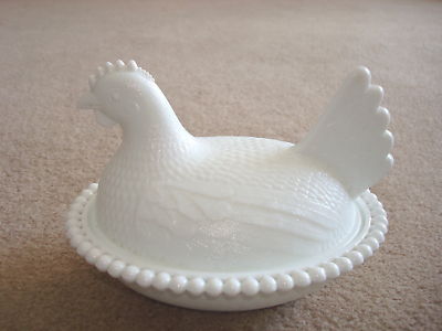 Vintage White Milk Glass Hen on Nest Candy Dish