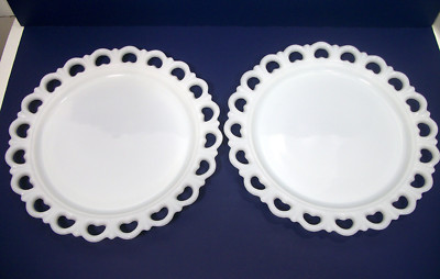 OPEN HEART MILK GLASS PLATTER PAIR VINTAGE!