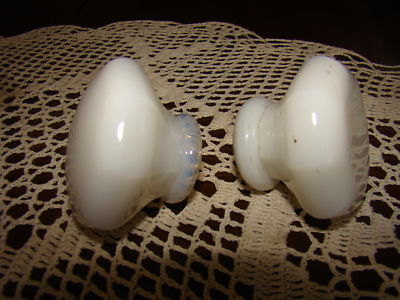 2 LOVELY OPALESCENT MILKGLASS DOOR KNOBS 1 1/2"X2 1/2"