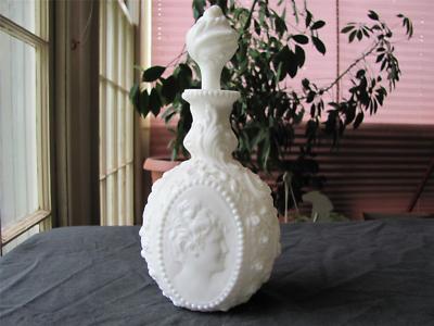 Antique Ornate Barber Shop Apothecary Milk Glass Bottle
