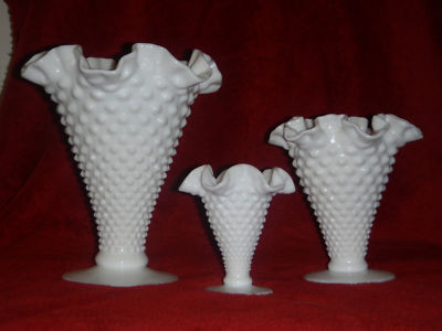 FENTON VINTAGE MILK GLASS HOBNAIL TRUMPET VASE SET LOOK