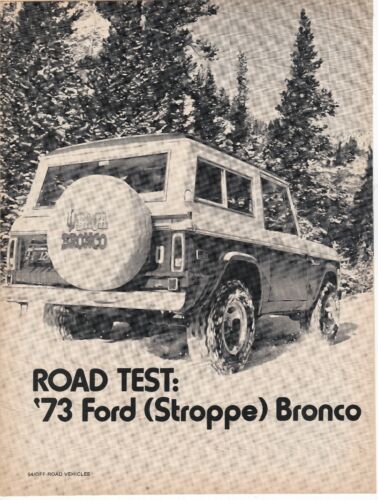 Title (ebay affiliate link): ''73 Ford (Stroppe) Bronco, Detailed Road Test from OFF-ROAD VEHICLES Magazine