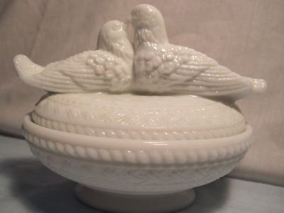 WESTMORELAND MILK GLASS DOVES ON NEST COVERED DISH