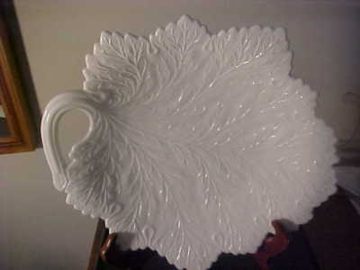 LARGE UNIQUE BEAUTIFUL LEAF MOTIF MILK GLASS CHARGER