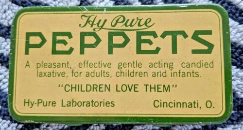 Title (ebay affiliate link): Rare Vintage Peppets Laxative Medicine Tin Cincinnati Ohio Hy-Pure Laboratories