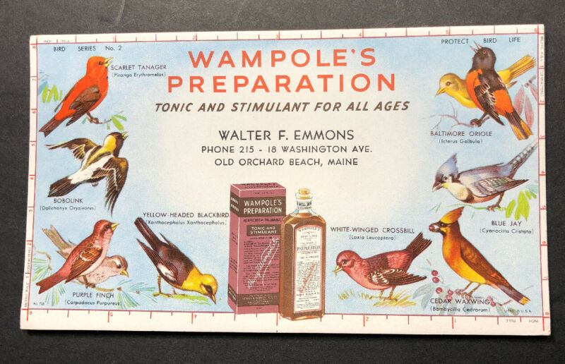 Wampole Birds Advertising Ink Blotter Mini Sign Old Orchard Beach Maine