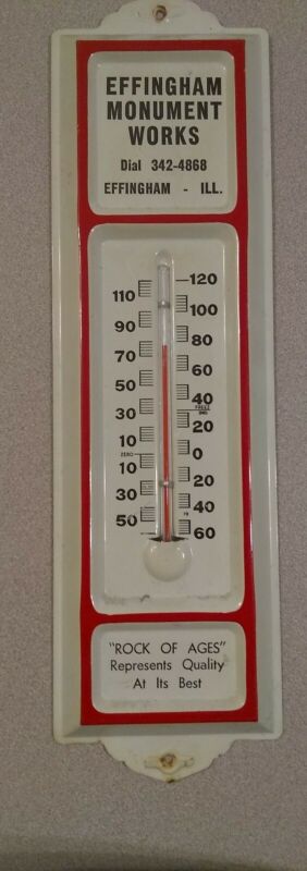 Vintage Effingham Monument Works Illinois Metal Advertising Thermometer