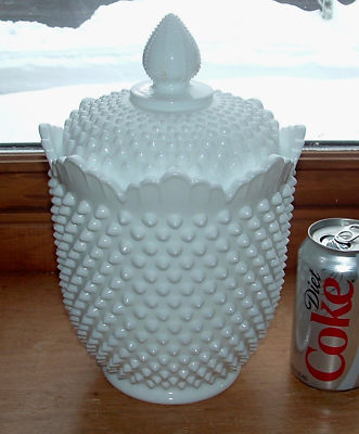 Rare Fenton Hobnail Milk Glass Cookie Jar 10 3/4" NoRes