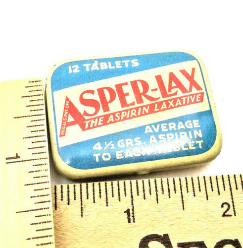 Title (ebay affiliate link): Vintage medicine tin - ASPER - LAX THE ASPIRIN LAXATIVE with directions .