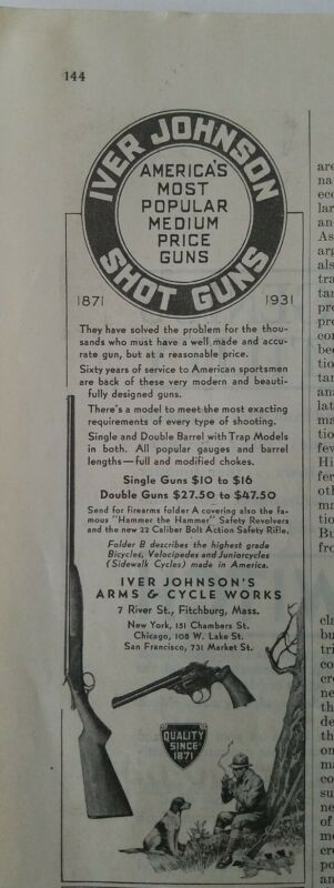 1931 Iver Johnson''s arms and Cycle Works shotgun revolver gun vintage ad
