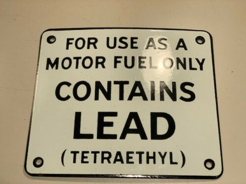 Title (ebay affiliate link): Old NOS Vintage 1940s Fuel Contains Lead Gas Station Pump Porcelain Metal Sign