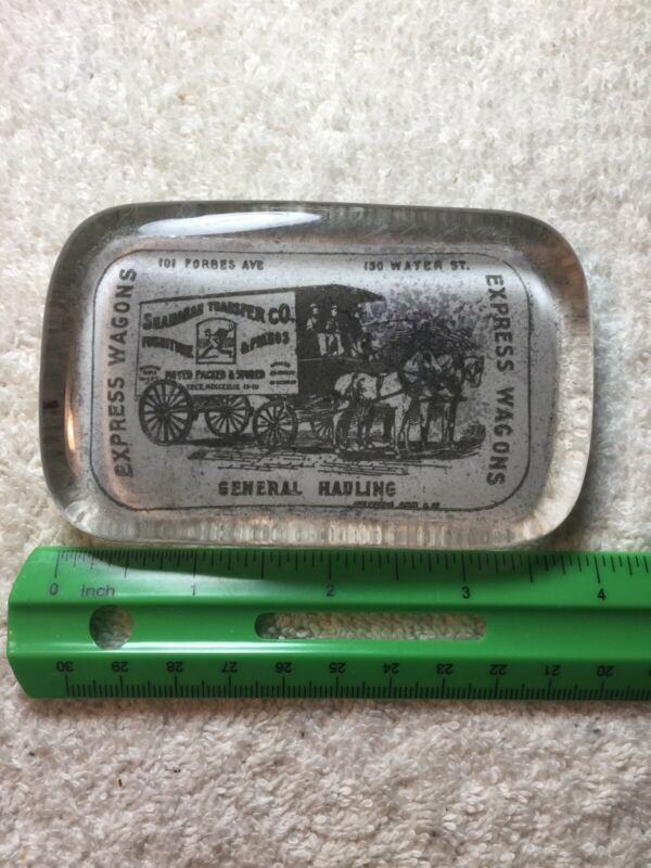 Antique Glass Paper Weight Express Wagons General Hauling Forbes Ave & Water St