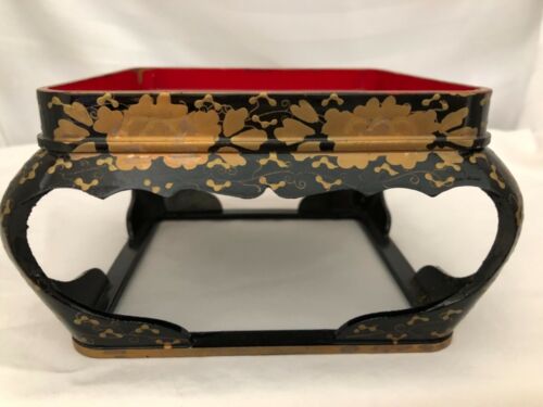 ANTIQUE JAPANESE HINA DOLL FURNITURE BLACK RED GOLD LACQUERED TABLE STAND