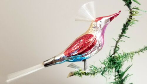 Title (ebay affiliate link): Red Headed glass Songbird, on Clip, Spun Glass Crown. Japanese, 1930s Ornament.
