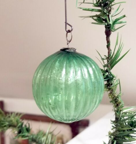 Title (ebay affiliate link): Green ribbed Glass Sphere, with Cap & Ring. Early 1920s Japanese Kugel-like Orn