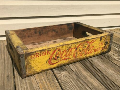 Title (ebay affiliate link): Vintage Original Coca-Cola Wood Yellow Soda Pop Crate Carrier Box Case