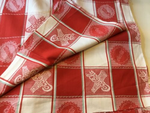 Title (ebay affiliate link): Fabric, 4+ yards, table cloth, dish towel weight, red and white Coca Cola design