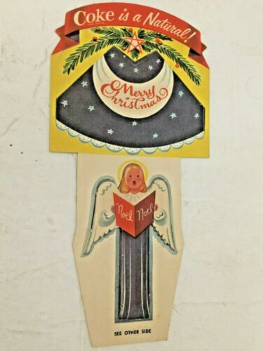 VINTAGE ORIGINAL COCA-COLA CARTON CARDBOARD ADVERTISING XMAS NOEL ANGEL CUT-OUT