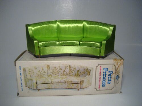 Title (ebay affiliate link): VINTAGE DOLLHOUSE FURNITURE IDEAL PETITE PRINCESS SALON CURVED SOFA COUCH GREEN