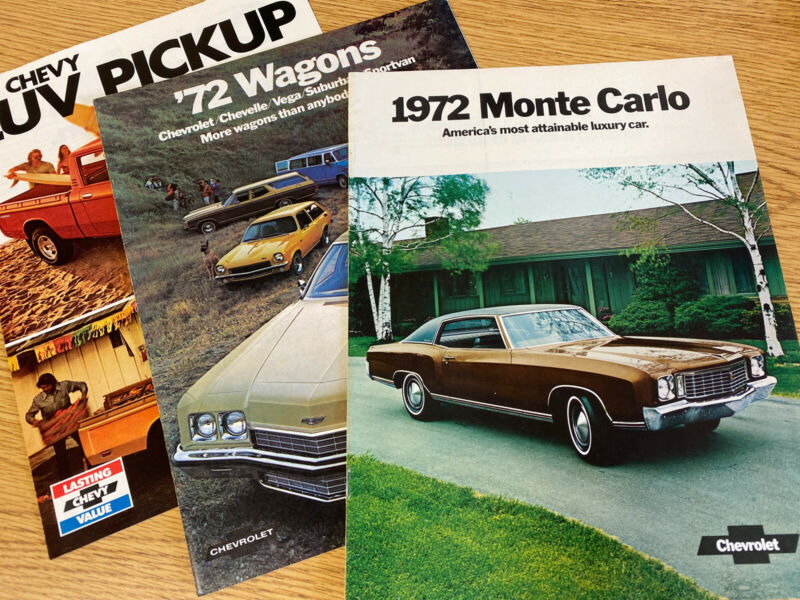 Title (ebay affiliate link): Vintage Lot Three Chevrolet Dealer Brochures 1972 Monte Carlo Wagons 1975 Luv PU