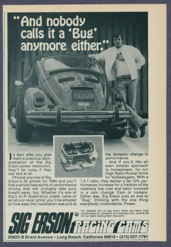 Volkswagen VW Bug Vdub Beetle Sig Erson Cams Vintage Magazine Print Ad 1973