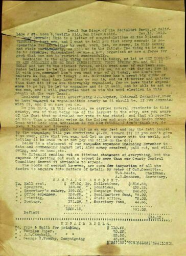 Title (ebay affiliate link): Extremely Rare - 1911 San Diego SOCIALIST PARTY Comrade Campaign Account Letter