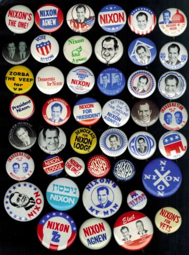 Title (ebay affiliate link): Lot of 44 RICHARD NIXON Presidential Campaign Pinback Buttons 1960 / 1968 / 1972