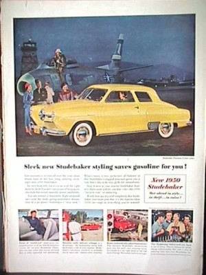 1950 STUDEBAKER CHAMPION 2-DOOR SEDAN ad JET FIGHTER