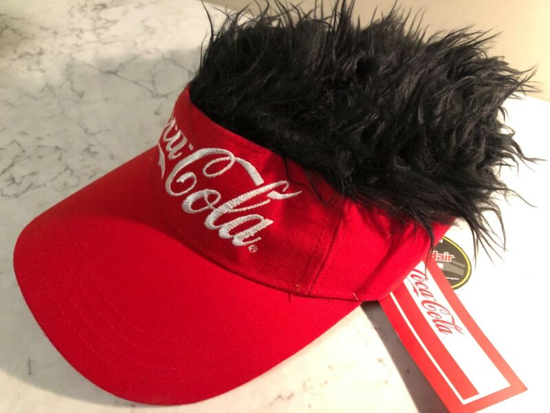 Title (ebay affiliate link): NEW FlairHair Red Coca-Cola Visor Cap, Black Hair, FATHERS DAY GIFT