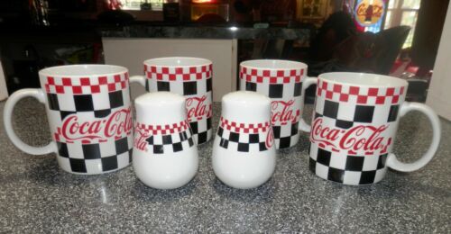 4 Coke Coca Cola Gibson Checkered Coffee / Tea Mugs & Set salt and Pepper NEW