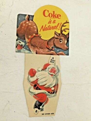 VINTAGE COCA-COLA CARTON CARDBOARD ADVERTISING XMAS RAIN DEER SANTA CUT-OUT