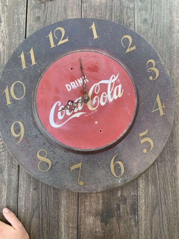 Title (ebay affiliate link): VINTAGE COCA-COLA ROUND TIN BROWN & RED WALL CLOCK - UNWORKING ANS BEAT UP