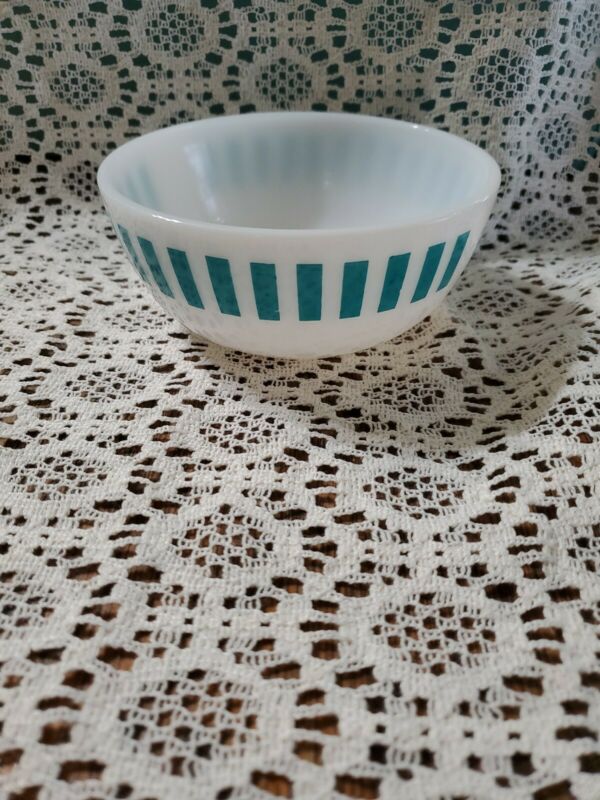 Title (ebay affiliate link): Vintage Hazel Atlas Turquoise Candy Stripe Milk Glass Cereal Bowl 5"