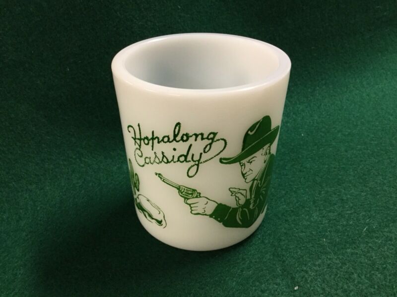 Vintage Hopalong Cassidy Child Mug 1950''s White Milk glass Green design