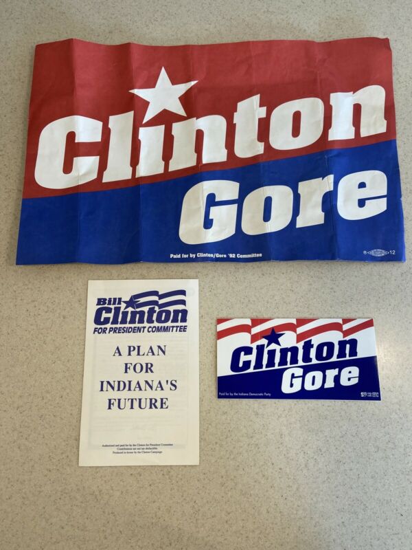 Title (ebay affiliate link): Bill Clinton Gore Presidential Campaign Bumper Sticker, Rally Sign, Brochure