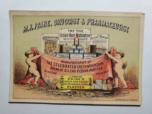 Title (ebay affiliate link): Late 1800''s Trade Card M.K. Paine Druggist Pharmacy Windsor VT NO Reserve