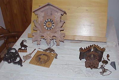 Two Antique Cuckoo Clocks for Repair Black Forest