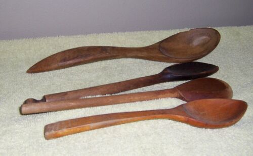 Title (ebay affiliate link): 4 Vintage All Wood Spoons Scoops Long Handles