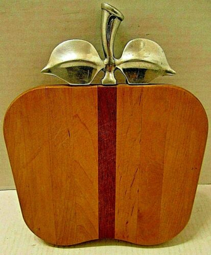 Title (ebay affiliate link): VINTAGE PRIMITIVE FARMHOUSE FIGURAL APPLE WOODEN CUTTING BOARD W/PEWTER STEM