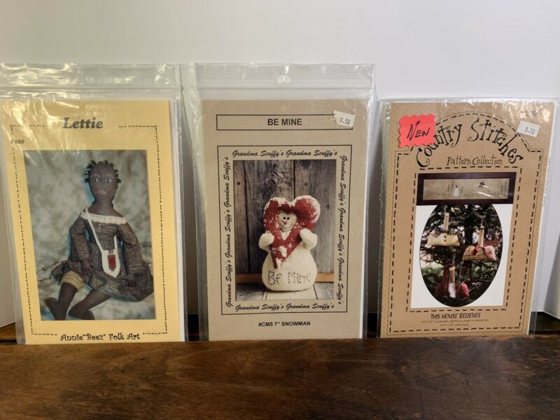 Title (ebay affiliate link): Primitive Patterns, 3 Patterns, Unused, Prim'' Doll, Snowman & Prim'' Ornaments